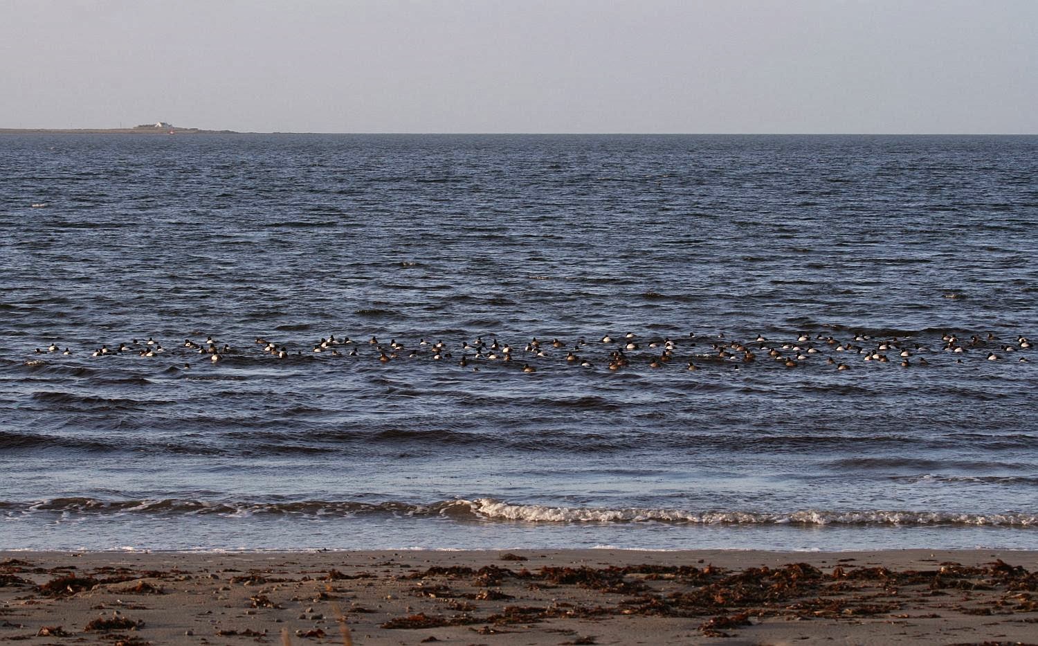 The wintering Scaup flock spends most of its time somewhere out in the middle of the loch between Blackrock and Bowmore, but every so often some of them come close to shore, as here.